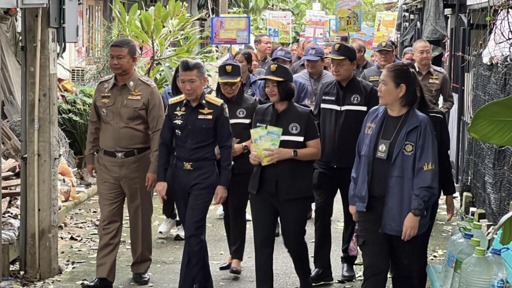ปปส.สนธิกำลังบช.น. บช.ปส. เขตคันนายาวบุกชุมชนคลองลำนุ่น ย่านคันนายาว เจอผู้ค้า-ผู้เสพ จับตรวจฉี่อีก 200 ราย