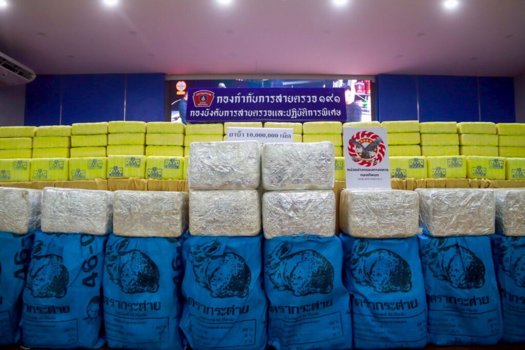 การจับกุมเกิดขึ้นเมื่อวันที่ 10 พฤศจิกายน 2568 เวลา 19.30 น. โดยเจ้าหน้าที่ตำรวจชุดปราบปรามยาเสพติด กองบังคับการสายตรวจและปฏิบัติการพิเศษ (ชปส.บก.สปพ.) ร่วมกับหน่วยข่าวกรองทางทหาร กองทัพบก เข้าตรวจค้นโกดังไม่มีเลขที่ และบริเวณถนนทางเข้าวัดแห่งหนึ่ง ใน จ.พระนครศรีอยุธยา หลังสืบทราบว่ามีการลักลอบเก็บซุกซ่อนยาเสพติดเพื่อกระจายต่อในพื้นที่ตอนใน เจ้าหน้าที่สามารถจับกุมผู้ต้องหาได้ 2 ราย ได้แก่ น.ส.เมรินทร์ อายุ 33 ปี และน.ส.ศิริรัตน์ อายุ 33 ปี พร้อมของกลาง ยาบ้า 50 กระสอบ รวมกว่า 10 ล้านเม็ด, รถยนต์ 3 คัน, รถจักรยานยนต์ 1 คัน รวมมูลค่าประมาณ 500 ล้านบาท