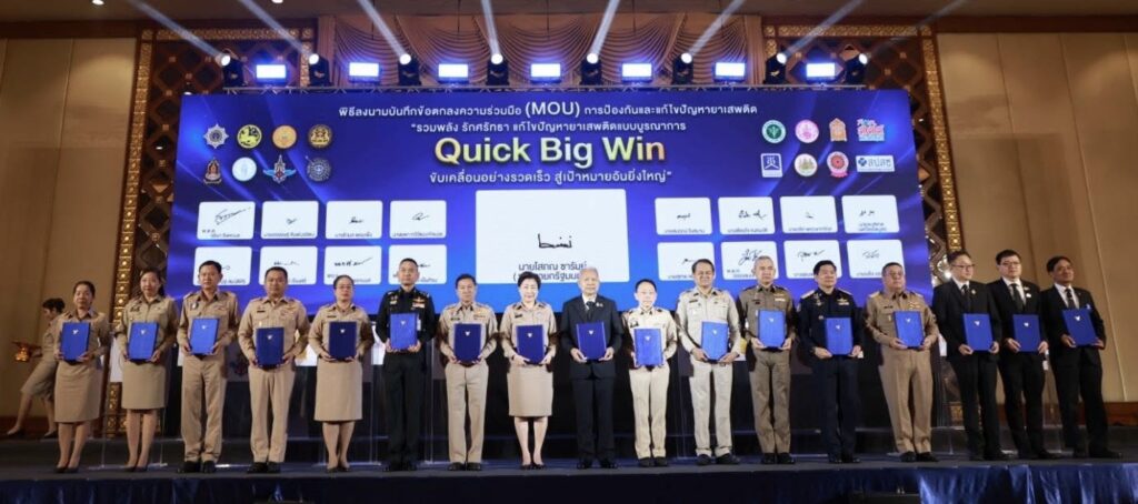 ทั้งนี้ การลงนามดังกล่าวถือเป็นจุดเริ่มต้นสำคัญอย่างยิ่งในการรวมพลังของหน่วยงานภาครัฐให้เป็นหนึ่งเดียวกัน เพื่อเสริมสร้างกลไก การทำงานที่ชัดเจน มีเป้าหมายร่วมกัน และสามารถผลักดันให้เกิดผลสัมฤทธิ์ที่เป็นรูปธรรม ซึ่งจะนำไปสู่การลดจำนวนผู้เสพและผู้ป่วยยาเสพติด การเพิ่มคุณภาพของระบบการบำบัดรักษาและการฟื้นฟู รวมถึงการสร้างสังคมไทยที่ปลอดภัยและปลอดยาเสพติดได้อย่างยั่งยืน