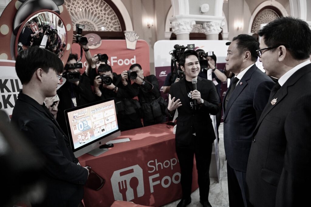นายกฯ ได้เยี่ยมชมบูธหน่วยงานที่ร่วมสนับสนุน ได้แก่ ธนาคารออมสิน กรมพัฒนาธุรกิจการค้า (DBD) สำนักงานส่งเสริมเศรษฐกิจดิจิทัล (DEPA) และผู้ให้บริการ Food Delivery ได้แก่ Grab, Lineman, Robinhood และ ShopeeFood