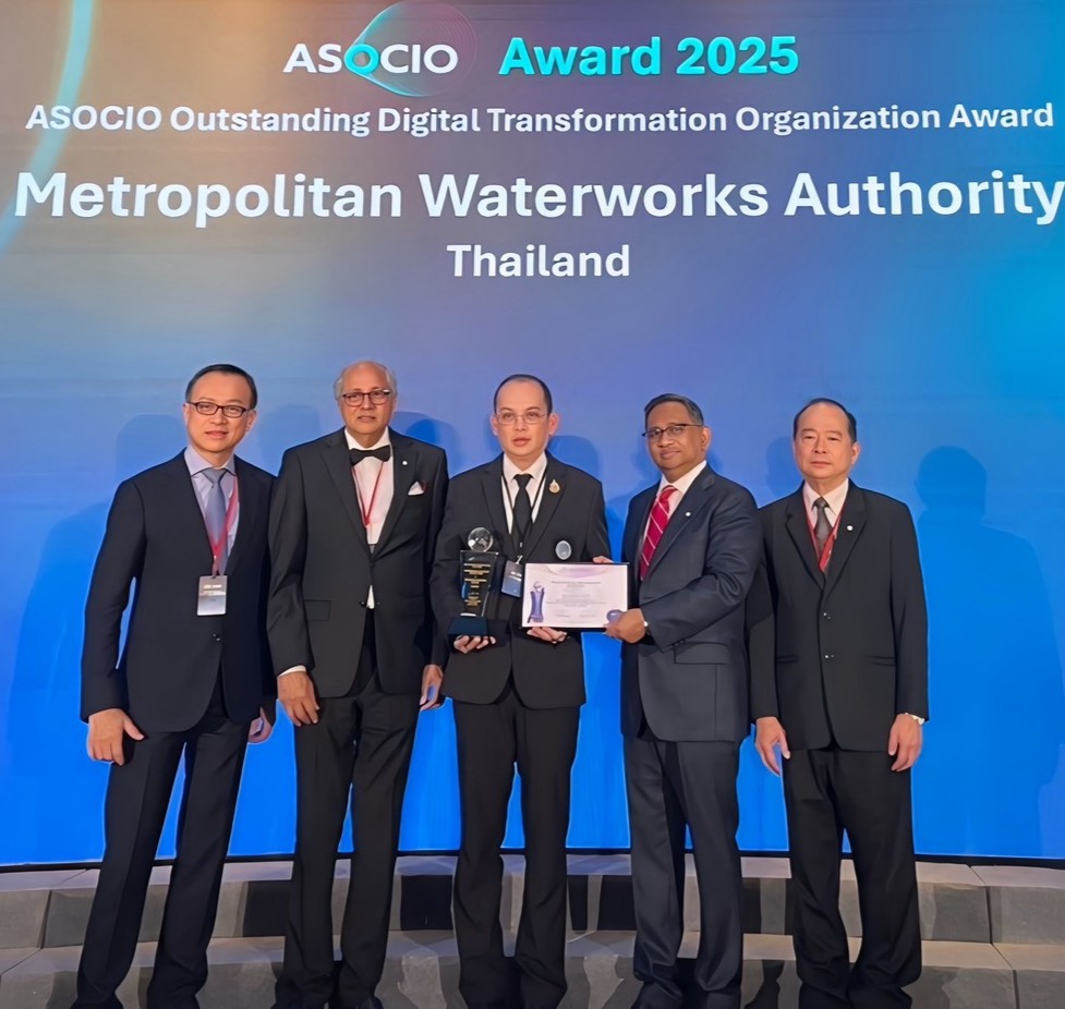 ภาพข่าว: นายปริพรรห์ พิณสุรงค์ รองผู้ว่าการ (เทคโนโลยีดิจิทัล) การประปานครหลวง (กปน.) พร้อมคณะ เป็นผู้แทน กปน. เข้ารับรางวัล ASOCIO Awards 2025 สาขา Outstanding Digital Transformation Organization จากสมาพันธ์ ASOCIO (Asian-Oceanian Computing Industry Organization) ซึ่งเป็นองค์กรระหว่างประเทศที่รวมสมาคมอุตสาหกรรมเทคโนโลยีสารสนเทศและบริการ กว่า 24 ประเทศในเอเชีย-โอเชียเนีย โดย กปน. ได้มีการนําเทคโนโลยีมาใช้ในการพัฒนาองค์กรได้อย่างโดดเด่นและประสบผลสําเร็จ จากการยกระดับประสบการณ์ผู้ใช้น้ำผ่านโครงการพัฒนาระบบสารสนเทศลูกค้าเพื่อเพิ่มประสิทธิภาพการบริการ (CIS Gen 5) และแพลตฟอร์ม MWA E-Service ที่ช่วยให้ลูกค้ายื่นขอรับบริการต่าง ๆ ได้ง่ายขึ้น พร้อมแอปพลิเคชัน MWA onMobile เวอร์ชั่น 3 ซึ่งมีผู้ใช้งานกว่า 1.3 ล้านราย รองรับการตรวจสอบค่าน้ำ ใบแจ้งค่าน้ำดิจิทัล การชำระค่าน้ำออนไลน์ บริการเช็กคุณภาพน้ำ และติดตามสถานะงานบริการ เป็นต้น