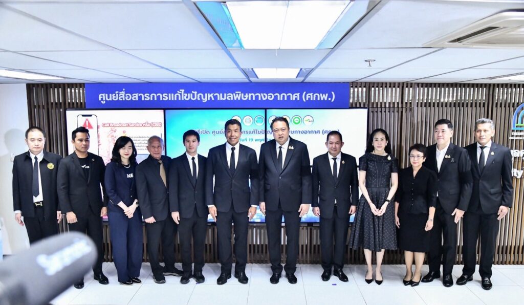 วันที่ 19 พฤศจิกายน 2568 นายสุชาติ ชมกลิ่น รองนายกรัฐมนตรีและรัฐมนตรีว่าการกระทรวงทรัพยากรธรรมชาติและสิ่งแวดล้อม เป็นประธานในพิธีเปิด ศูนย์สื่อสารการแก้ไขปัญหามลพิษทางอากาศ หรือ ศกพ. ณ ชั้น 7 อาคารกระทรวงทรัพยากรธรรมชาติและสิ่งแวดล้อม ร่วมกับ นายชัชชาติ สิทธิพันธุ์ ผู้ว่าราชการกรุงเทพมหานคร และเครือข่ายความร่วมมือ พร้อมมอบนโยบายด้านการเตรียมความพร้อมรับมือสถานการณ์มลพิษทางอากาศและการเสริมประสิทธิภาพระบบการแจ้งเตือนให้แก่ประชาชน โดยบูรณาการความร่วมมือร่วมกับหลายภาคส่วนทั้งภาครัฐและภาคเอกชน อาทิ กรมอุตุนิยมวิทยา GISTDA กระทรวงมหาดไทย กรุงเทพมหานคร บริษัท ไลน์ คอมพานี (ประเทศไทย) จำกัด และบริษัท แอดวานซ์ อินโฟร์ เซอร์วิส จำกัด (มหาชน) เพื่อบูรณาการข้อมูลที่สำคัญในการใช้เฝ้าระวังและแจ้งเตือนสถานการณ์ PM2.5 แก่ประชาชน