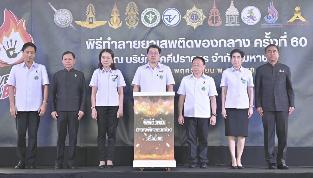 วันที่ 19 พฤศจิกายน 2568 ที่ บริษัท อัคคีปราการ จํากัด (มหาชน) นิคมอุตสาหกรรมบางปู จังหวัดสมุทรปราการ นายพัฒนา พร้อมพัฒน์ รัฐมนตรีว่าการกระทรวงสาธารณสุข เป็นประธานพิธีเผาทำลายยาเสพติดของกลางครั้งที่ 60 โดยมี นายแพทย์สมฤกษ์ จึงสมาน ปลัดกระทรวงสาธารณสุข พลตำรวจตรี สมบูรณ์ เทียนขาว รองผู้บัญชาการตำรวจปราบปรามยาเสพติด กองบัญชาการตำรวจปราบปรามยาเสพติด สำนักงานตำรวจแห่งชาติ เภสัชกรหญิงสุภัทรา บุญเสริม เลขาธิการคณะกรรมการอาหารและยา พร้อมด้วย ภาคีเครือข่าย ได้แก่ สำนักงานตำรวจแห่งชาติ กองทัพอากาศ กองทัพเรือ กองทัพบก สำนักงานคณะกรรมการป้องกันและปราบปรามยาเสพติด สำนักงานอัยการสูงสุด กรมศุลกากร กรมประชาสัมพันธ์ และกรมโรงงานอุตสาหกรรม ร่วมเป็นสักขีพยาน