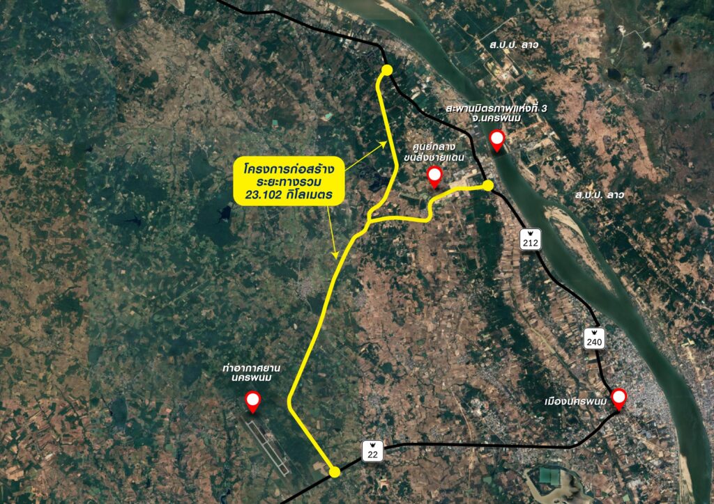 ถนนเชื่อมศูนย์ซ่อมอากาศยาน – ศูนย์กลางการค้าส่งชายแดนบริเวณสะพานมิตรภาพแห่งที่ 3 – ถนนเชื่อม ทล.212 ท่าอุเทน นครพนม คืบ90% เปิดใช้ต้นปี69