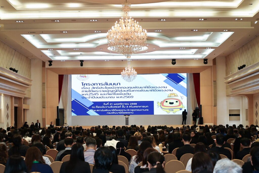 วันที่ 21 พฤศจิกายน 2568 นางสาวตรีนุช เทียนทอง รัฐมนตรีว่าการกระทรวงแรงงาน เป็นประธานเปิดโครงการสัมมนา เรื่องสิทธิประโยชน์จากกองทุนพัฒนาฝีมือแรงงานภายใต้พระราชบัญญัติส่งเสริมการพัฒนาฝีมือแรงงาน พ.ศ. 2545 และที่แก้ไขเพิ่มเติม ประจำปีงบประมาณ พ.ศ. 2569 นายสมาสภ์ ปัทมะสุคนธ์ รองปลัดกระทรวงแรงงาน รักษาราชการแทนอธิบดีกรมพัฒนาฝีมือแรงงาน กล่าวรายงาน โดยมีคณะทำงานรัฐมนตรี พันตำรวจโท วรรณพงษ์ คชรักษ์ ปลัดกระทรวงแรงงาน นายสันติ นันตสุวรรณ รองปลัดกระทรวงแรงงาน นายเกริกไกร นาสมยนต์ ที่ปรึกษากฎหมาย นายณัฐวุฒิ ภัทรประยูร ที่ปรึกษาวิชาการแรงงาน ผู้บริหารกระทรวงแรงงาน ผู้บริหารกรมพัฒนาฝีมือแรงงาน สถานประกอบกิจการ และผู้เข้าร่วมสัมมนา 500 คน เข้าร่วม ณ ห้องมัฆวานรังสรรค์ ชั้น 3 สโมสรทหารบก