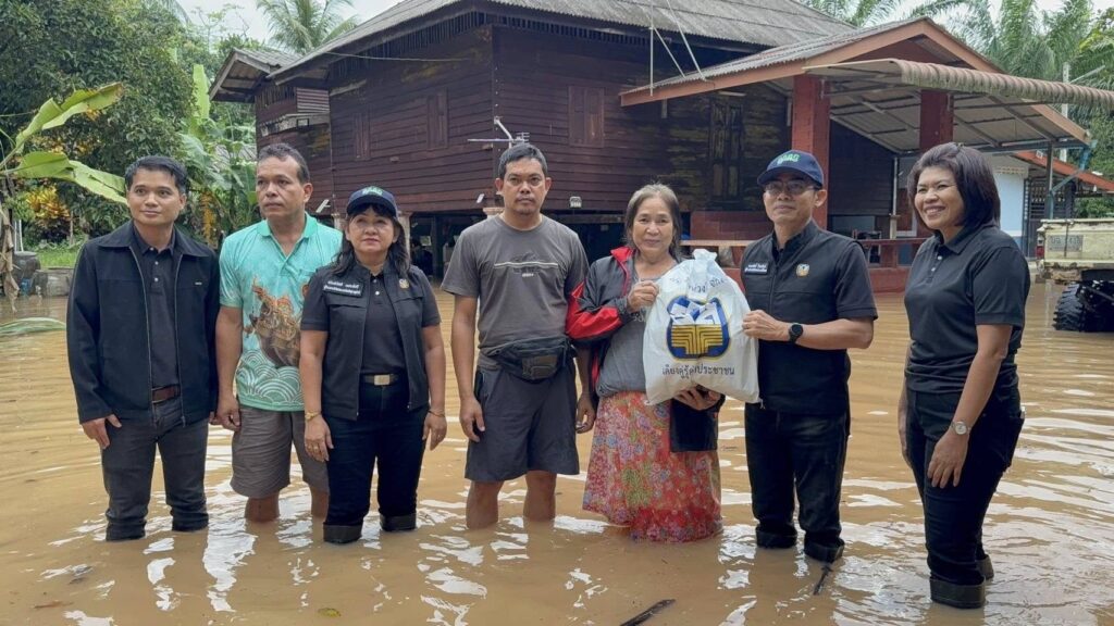 นายเอกนิติ นิติทัณฑ์ประภาศ รองนายกรัฐมนตรีและรัฐมนตรีว่าการกระทรวงการคลัง ในฐานะประธานกรรมการธนาคารเพื่อการเกษตรและสหกรณ์การเกษตร (ธ.ก.ส.) มีความห่วงใยผู้ประสบอุทกภัยในพื้นที่ภาคใต้ได้มอบนโยบายเร่งด่วน เพื่อให้ความช่วยเหลือประชาชนผู้ได้รับความเดือดร้อน โดยมอบหมายให้ ธ.ก.ส. สาขาในพื้นที่ภาคใต้ ได้แก่ จังหวัดสุราษฎร์ธานี จังหวัดกระบี่ จังหวัดสงขลา จังหวัดนครศรีธรรมราช จังหวัดพัทลุง จังหวัดตรัง จังหวัดสตูล จังหวัดยะลา จังหวัดนราธิวาส และจังหวัดปัตตานี ออกเยี่ยมเยียนให้ความช่วยเหลือและให้กำลังใจ พร้อมจัดถุงยังชีพ ประกอบด้วย ข้าวพร้อมทานตราอุ่นอิ่มที่สามารถรับประทานได้ทันที น้ำดื่มตรา ธ.ก.ส. อาหารกระป๋อง และสิ่งของจำเป็นอื่น ๆ ส่งมอบให้แก่ประชาชนที่ได้รับความเดือดร้อนในพื้นที่