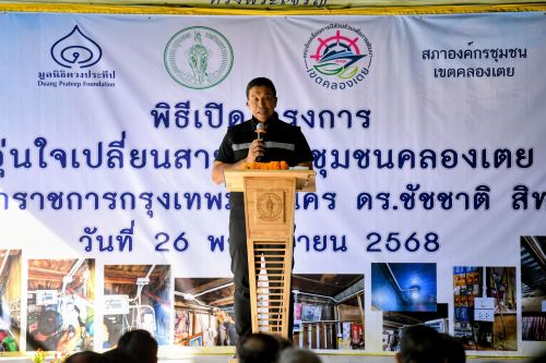 วันที่ 26 พฤศจิกายน 2568 ที่ลานกีฬาชุมชนน้องใหม่คลองเตย เขตคลองเดย นายชัชชาติ สิทธิพันธุ์ ผู้ว่าราชการกรุงเทพมหานคร เป็นประธานพิธีเปิดโครงการ “อุ่นใจเปลี่ยนสายไฟในชุมชมเขตคลองเตย” โดย นางประทีป อึ้งทรงธรรม ฮาตะ เลขาธิการมูลนิธิดวงประทีป และประธานโครงการ กล่าวรายงานความเป็นมา นายบำรุง สำเนียงงาม ผู้อำนวยการเขตคลองเตย ผู้แทนสภาองค์กรชุมชนเขตลองเตย คณะขับเคลื่อนการมีส่วนร่วมเพื่อการพัฒนาเขตคลองเตย ผู้แทนโรตารี ผู้แทนองค์กร ชุมชน และผู้เกี่ยวข้อง เข้าร่วม