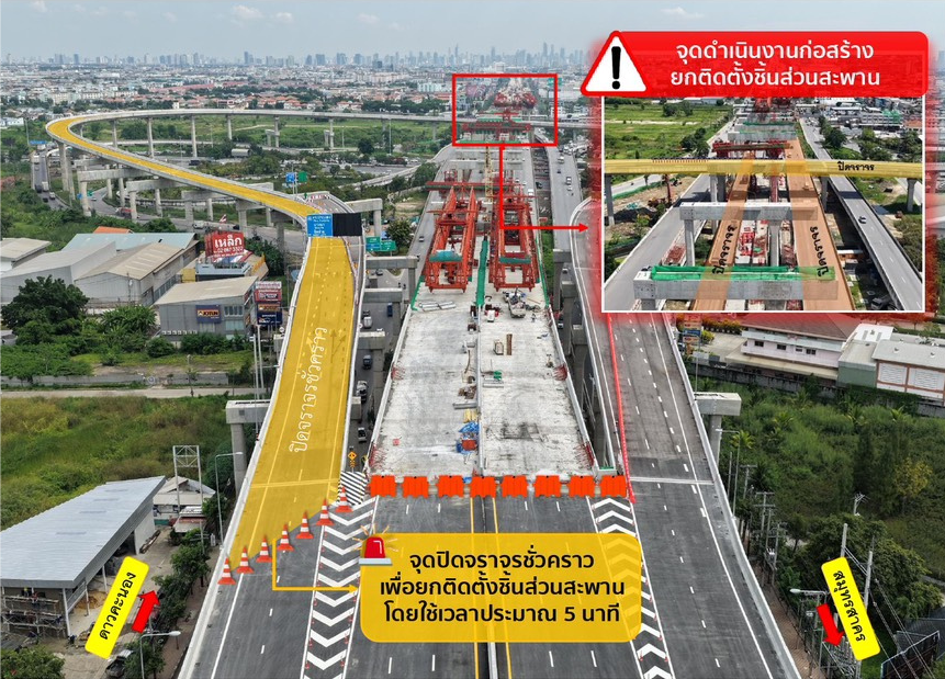 การทางพิเศษแห่งประเทศไทย (กทพ.) แจ้งว่า กิจการร่วมค้า ยูเอ็น – ซีซี ประกอบด้วย บริษัท ยูนิค เอ็นจิเนียริ่ง แอนด์ คอนสตรัคชั่น จำกัด (มหาชน) และบริษัท ซีวิล คอนสตรัคชั่น เซอร์วิสเชส แอนด์โปรดักส์ จำกัด เป็นผู้รับจ้างดำเนินการก่อสร้าง โครงการทางพิเศษสายพระราม 3 – ดาวคะนอง – วงแหวนรอบนอกกรุงเทพมหานคร ด้านตะวันตก สัญญาที่ 1 จะดำเนินการก่อสร้างทางยกระดับ จึงมีความจำเป็นจะต้องจะต้องปิดจราจร (ชั่วคราว) บนทางหลวงพิเศษหมายเลข 82 (M82) เพื่อยกติดตั้งชิ้นส่วนสะพาน บริเวณทางเชื่อมต่อถนนวงแหวนกาญจนาภิเษก (ขาเข้า) ต่างระดับบางขุนเทียน ตั้งแต่วันที่ 13-16 ธันวาคม 2568 เวลา 21:00 น. ถึง 04:00 น. โดยใช้เวลาครั้งละประมาณ 5 นาที ผู้ใช้ทางสามารถใช้ทางหลวงพิเศษM82 ได้ตามปรกติ โดยทางโครงการจัดเจ้าหน้าที่อำนวยความสะดวกด้านการจราจรตลอดเวลา