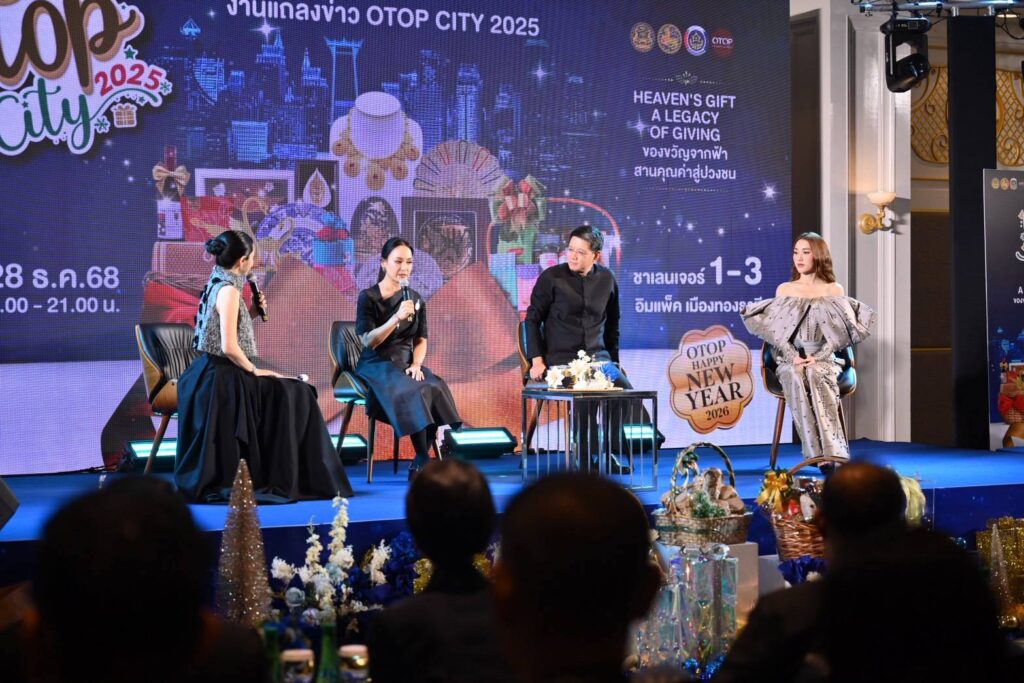 วันที่ 15 ธันวาคม 2568 เวลา 14.00 น. ที่ห้องจูปิเตอร์ 12 ศูนย์แสดงสินค้าและการประชุม อิมแพ็ค เมืองทองธานี อ.ปากเกร็ด จ.นนทบุรี นางสาวศศิธร กิตติธรกุล รัฐมนตรีช่วยว่าการกระทรวงมหาดไทย เป็นประธานแถลงข่าวการจัดงาน OTOP City 2025 ภายใต้แนวคิด “Heaven’s Gift A Legacy of Giving ของขวัญจากฟ้า สานคุณค่าสู่ปวงชน” โดยมี นายสยาม ศิริมงคล อธิบดีกรมการพัฒนาชุมชน พร่อมด้วยนางสาวรักษ์วนีย์ คำสิงห์ (เบสท์ คำสิงห์) นักแสดง/ยูทุบเบอร์ ร่วมแถลงข่าว โดย นายธีรพัฒน์ คัชมาตย์ อธิบดีกรมป้องกันและบรรเทาสาธารณภัย นางสาวลิปิการ์ กำลังชัย ผู้ตรวจราชการกระทรวงวัฒนธรรม นายวินัย โตเจริญ รองอธิบดีกรมการปกครอง นายธนนท์ พรรพีภาส รองอธิบดีกรมส่งเสริมการปกครองท้องถิ่น นายบูรณิศ ยุกตะนันทน์ ผู้อำนวยการองค์การตลาด ว่าที่ ร.ต.พัฒนภูมิ อังศุสิงห์ รองผู้อำนวยการองค์การตลาด นางภาวิณี ไชยสิทธิ์ กรรมการผู้จัดการ บริษัท ประชารัฐรักสามัคคี วิสาหกิจเพื่อสังคม (ประเทศไทย) จำกัด พร้อมด้วยผู้บริหาร ข้าราชการ กรมการพัฒนาชุมชน ภาคีเครือข่ายทุกภาคส่วน ร่วมในงาน