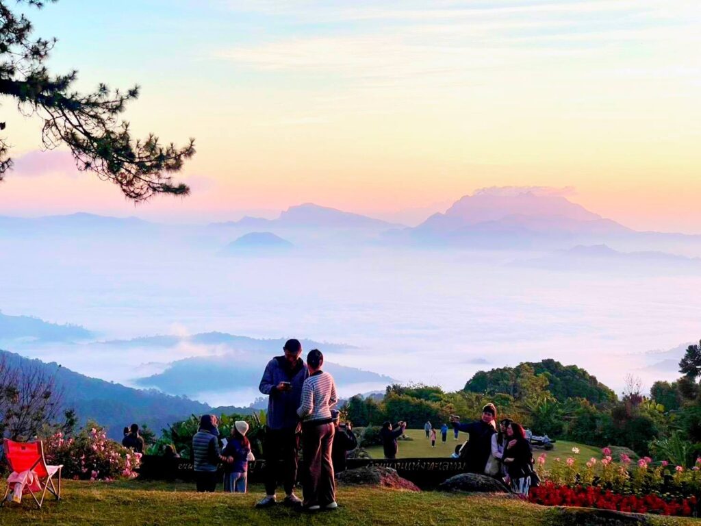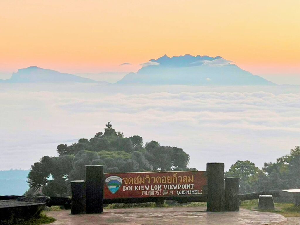 ณ จุดชมวิวกิ่วลม จุดชมพระอาทิตย์ขึ้นชื่อดังบนสันเขาสูง นักท่องเที่ยวได้สัมผัสมุมมองพาโนรามา 360 องศา มองเห็นแนวเทือกเขาทอดยาวสุดสายตา ท่ามกลางทะเลหมอกขาวโพลน สร้างความประทับใจให้กับผู้ที่ขึ้นมาสัมผัสอากาศหนาวและแสงแรกของวัน
