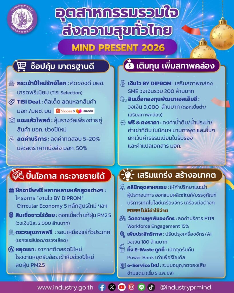 “ธนกร” สั่ง ก.อุตฯ แจก 4 กล่องของขวัญปีใหม่ 2569 ให้คนไทย ช้อปคุ้ม-เติมทุน-ปั้นโอกาส-สร้างอนาคต