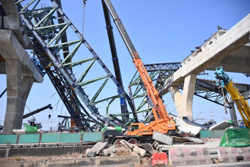 นายกรัฐมนตรี กล่าวว่า จากการลงพื้นที่ตรวจสอบสถานที่เกิดเหตุเบื้องต้น พบว่า เกิดจากเครนยกคอนกรีตหรือ Launching Truss เกิดปัญหา ไม่ได้เกิดจากโครงสร้างคอนกรีต ซึ่งที่ถล่มลงมาก็เป็นตัวโครงเหล็ก ไม่ได้ก่อให้เกิดผลกระทบกับโครงสร้างหลักของการใช้งานแต่อย่างใด โดยสถานการณ์ขณะนี้ เจ้าหน้าที่สามารถกู้ร่างผู้เสียชีวิตได้ทั้ง 2 รายแล้วตั้งแต่เมื่อคืนที่ผ่านมา ซึ่งต่อจากนี้จะได้ตั้งคณะกรรมการเพื่อตรวจสอบข้อเท็จจริงภายใน 7 วัน และเข้ากู้ชิ้นส่วนอุปกรณ์ต่าง ๆ เพื่อทำการตรวจสอบสาเหตุโดยละเอียดต่อไป